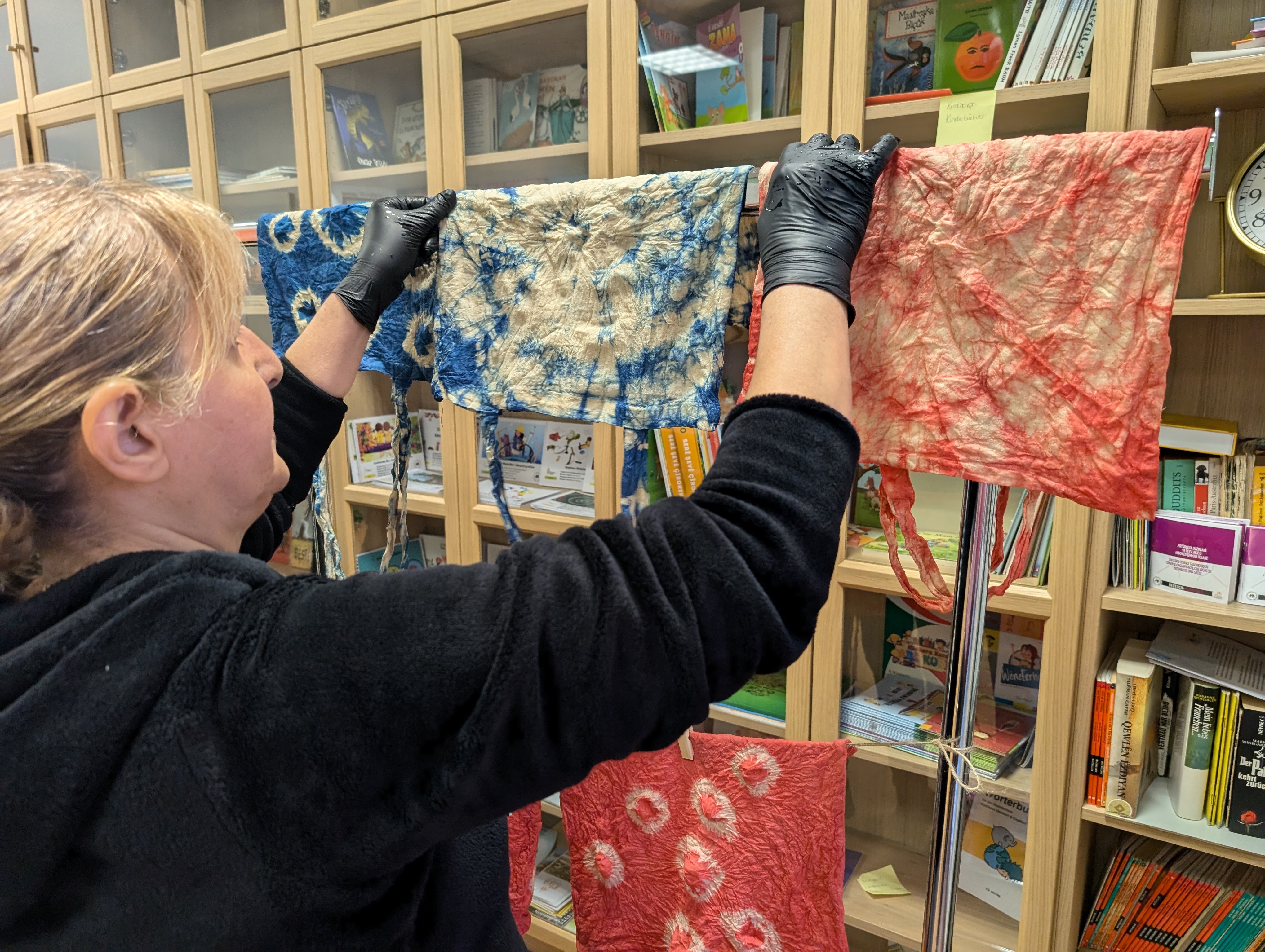 Shibori ist eine traditionelle japanische Färbetechnik, bei der Stoffe durch Abbinden, Falten und Pressen auf kreative Weise gefärbt werden.