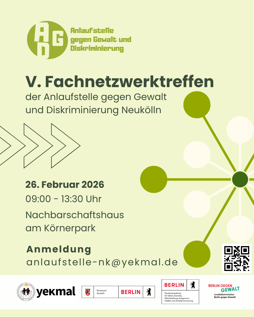 Wir laden herzlich zum 5. Fachnetzwerktreffen der Anlaufstelle gegen Gewalt und Diskriminierung Neukölln ein.