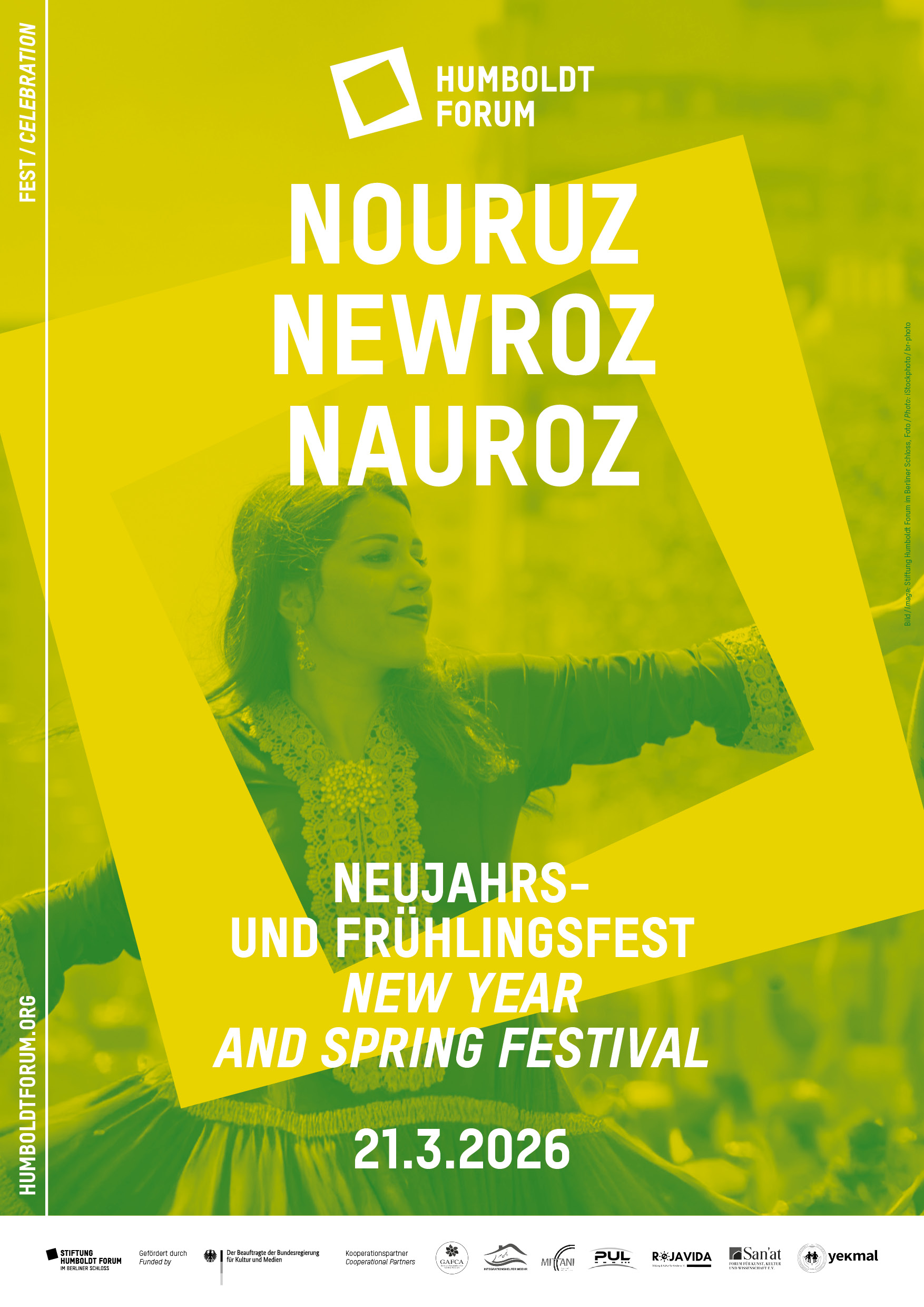Das Humboldt Forum organisiert gemeinsam mit Yekmal e.V. und sechs Berliner Vereinen einen Tag voller Veranstaltungen anlässlich des Newroz-Festes. Sie erwartet ein vielfältiges Programm mit Gesprächen, Musik, Tanz, Workshops sowie Marktständen und kulinarischen Spezialitäten.